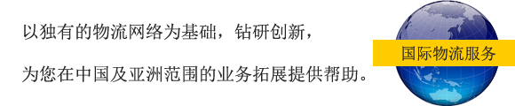 我们坚持的物流服务是为您送达安心,安全的商品,而非简单的运送。这是我们物流服务的基本目标。整备扩充我们的“海外物流加工中心”是我们实现目标的措施之一。 上海,青岛,柬埔寨的三个据点,都是设置在距离机场及港口最近的地方。以衣料品等商品的彻底检品,到商品汇总加工,封装,贴标及最终跟踪服务,实施完全的服务体制。