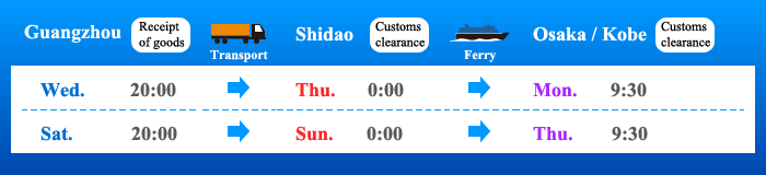 ● Procedures for customs clearance in Osaka will be taken after arrival at the Osaka Port and completed on the same day.